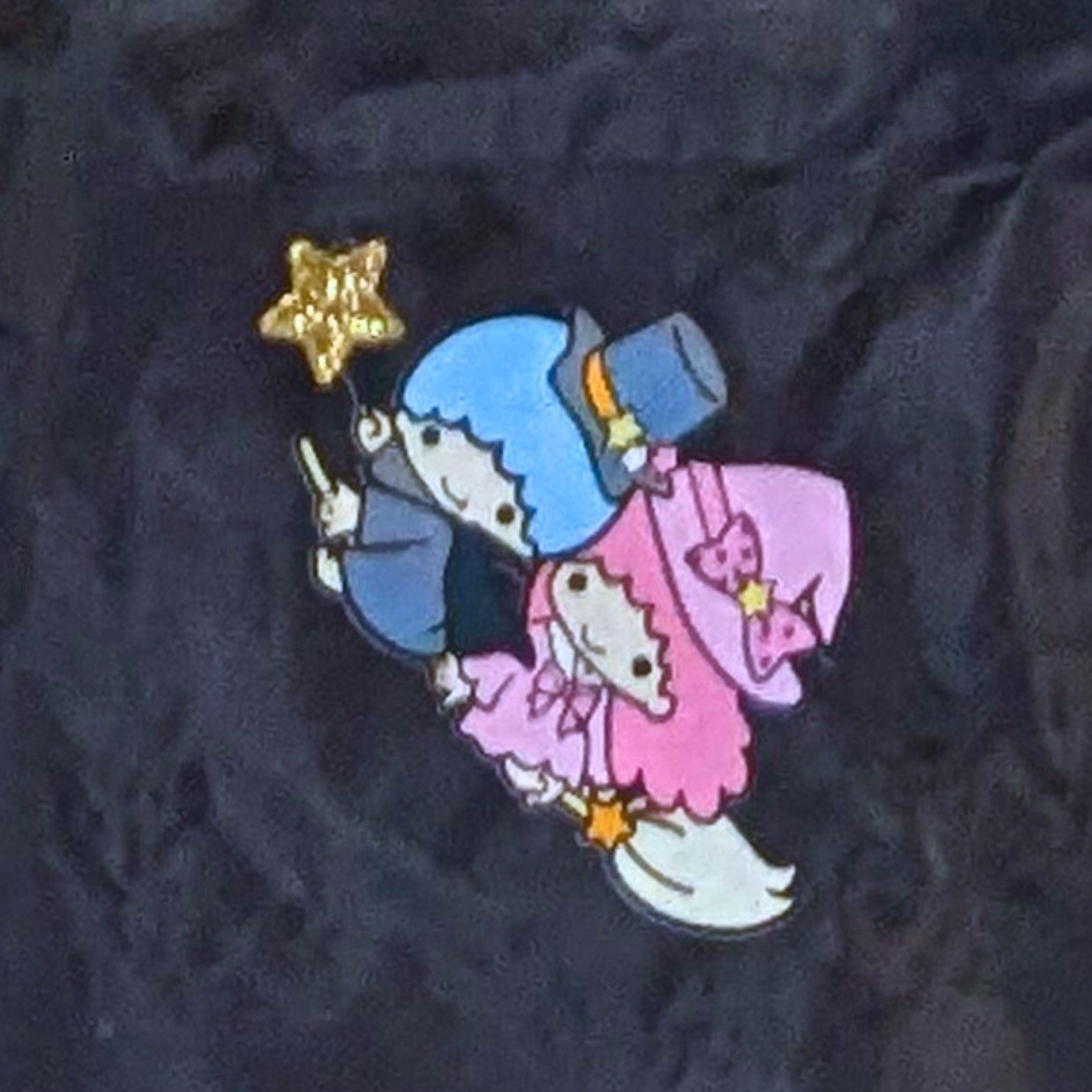 Embrace a bit of magic with our Black Zip-Close Crossbody Bag featuring a graphic inspired by the adorable Little Twin Stars from Sanrio! One side showcases the twins dressed as a wizard and witch, flying on a broomstick. One twin is casting a spell with a sparkling 3D golden star wand, making this bag as enchanting as it is practical! ✨🎉
