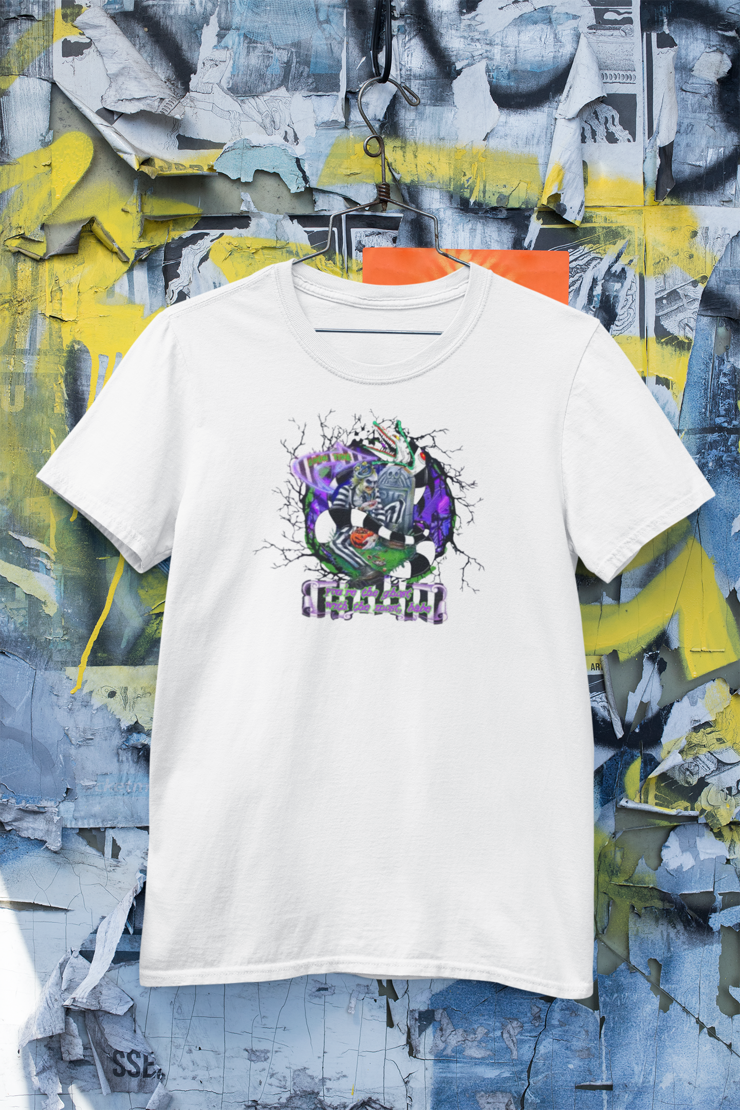 Make a bold statement with our White Kirkland Graphic T-Shirt, featuring a large, eye-catching graphic of Beetlejuice on the front! Perfect for any fan of the classic film, this tee is a must-have for casual outings or Halloween fun! 🎉💀
