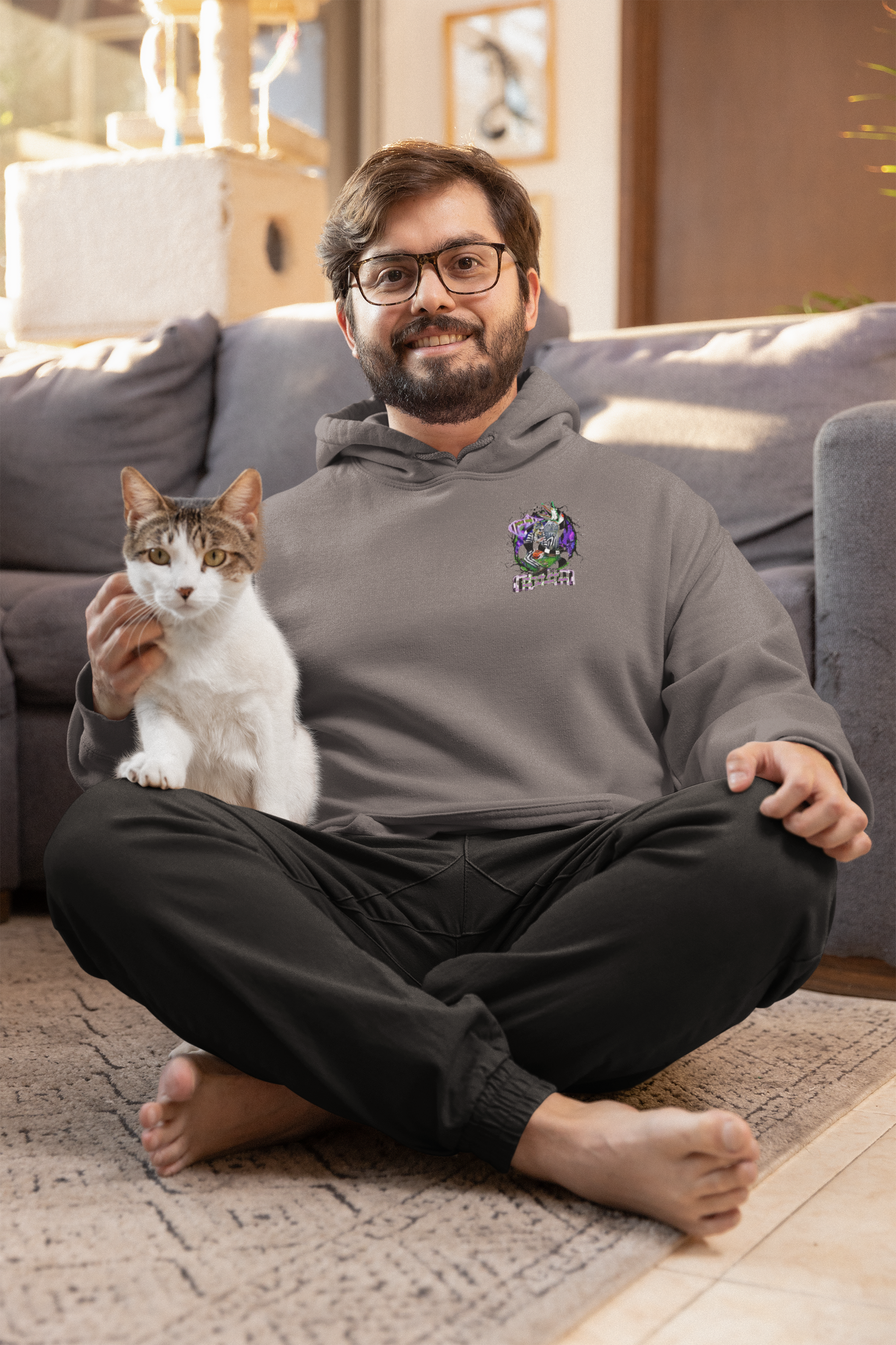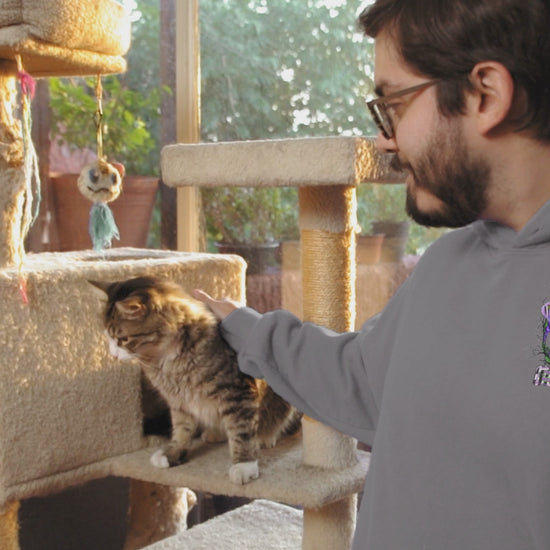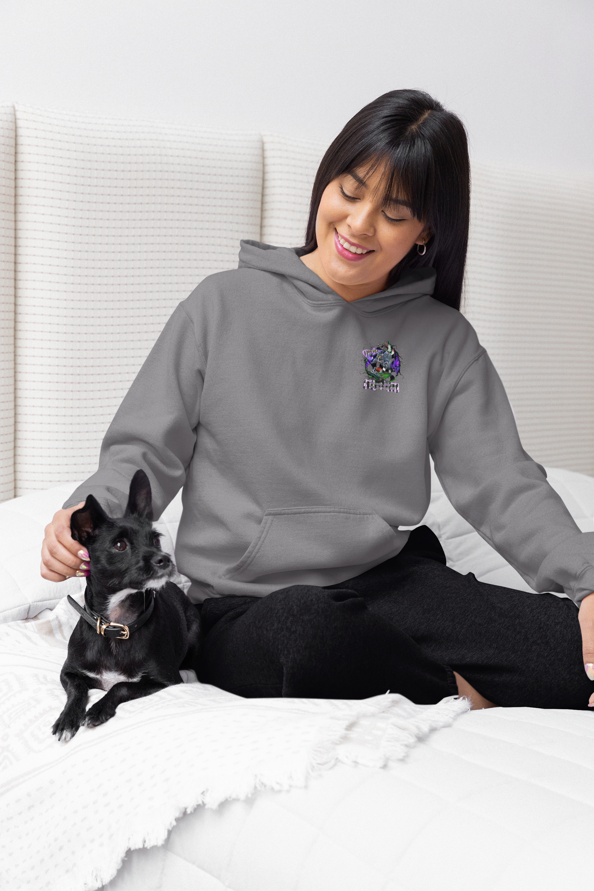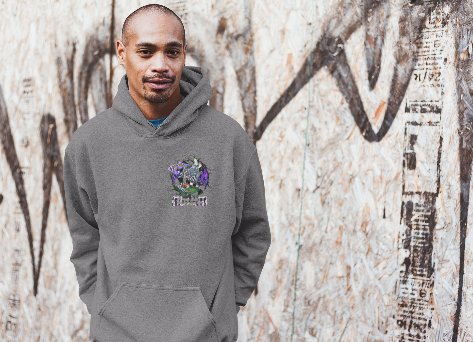 Stay cozy this Halloween with our Grey Hoodie inspired by Divided by H&M! This stylish hoodie features a small chest pocket-sized graphic of Beetlejuice on the front, and a larger version on the back, making it a perfect statement piece for any fan of the classic film!