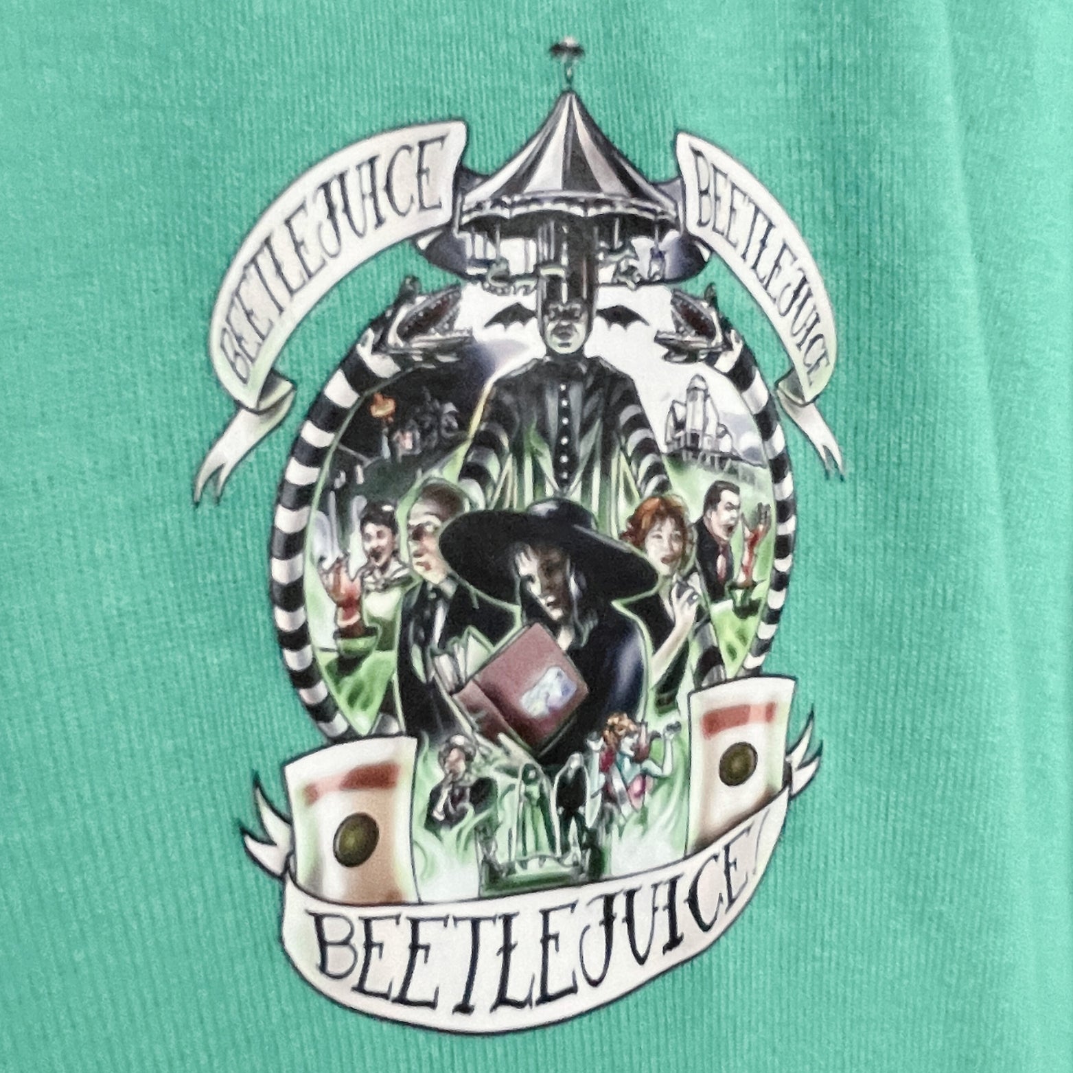 Stay stylish and comfy while embracing your favorite ghost with our Aqua Green Beetlejuice Long Sleeve Top! This cozy top features a small Beetlejuice graphic on the chest, making it a perfect choice for any casual outing or cozy day in. With its flattering V-neck design, it’s sure to become a staple in your wardrobe! 👻✨