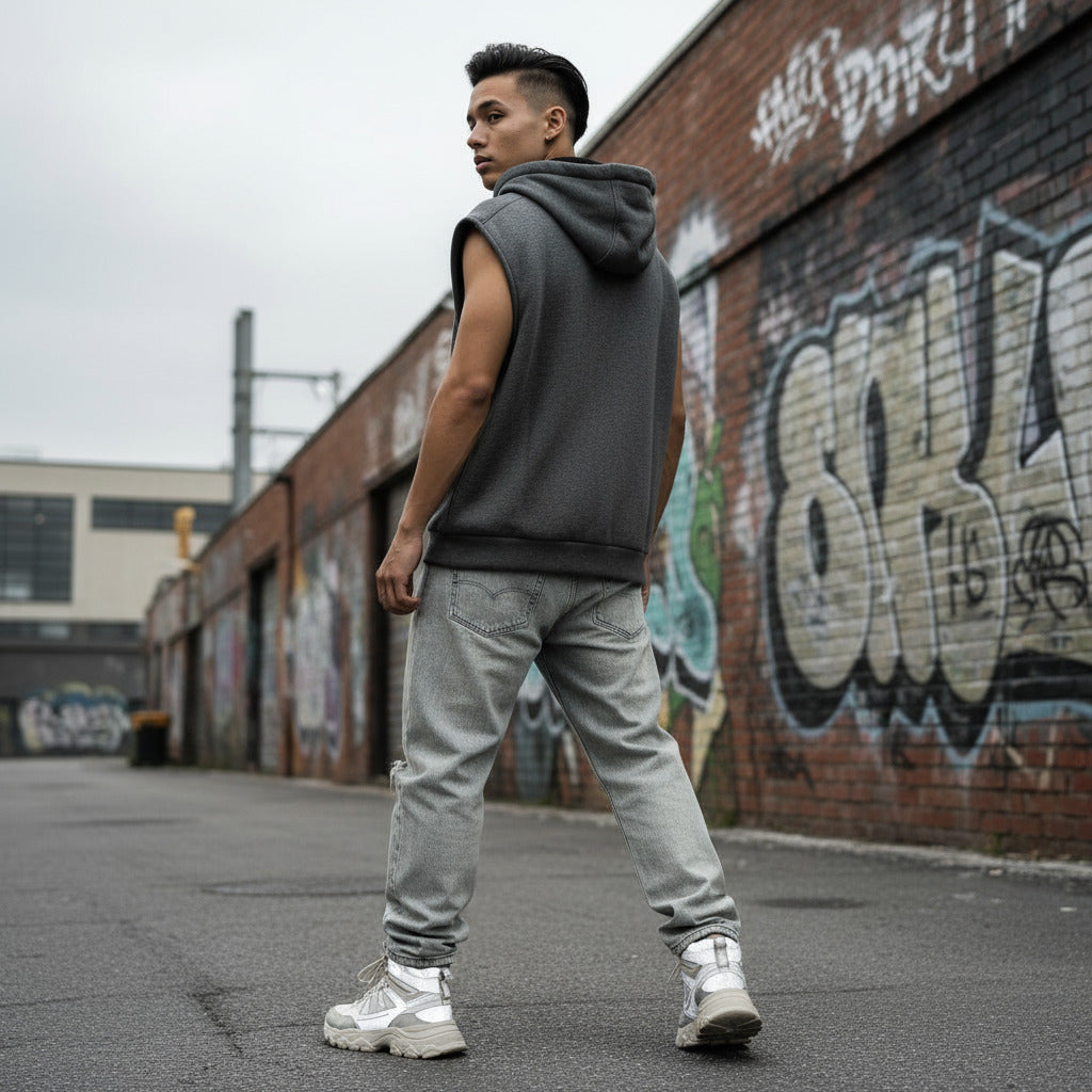 Embrace the chill with our Thick and Comfy Hoodie Vest! This warm and stylish vest is perfect for layering during the fall and winter seasons. It features a small chest pocket-sized graphic of Beetlejuice on the front, and a large version of the same graphic on the back, making it a standout piece for any horror fan!